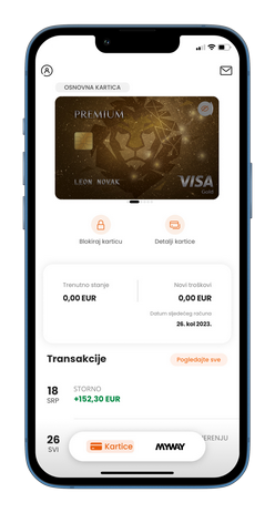 Kupnja u inozemstvu svakako će biti lakša i opuštenija uz Premium Visa karticu i novu funkcionalnost MyWay aplikacije putem koje jednokratne transakcije na stranim prodajnim mjestima možete naknadno podijeliti na tri rate.