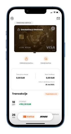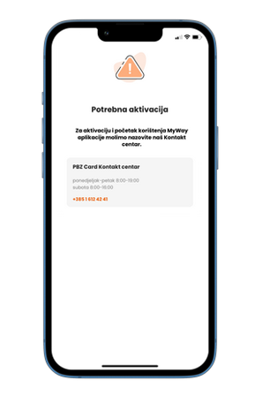 Napominjemo da će unutar aplikacije biti prikazan broj mobitela koji je evidentiran u sustavu PBZ Carda. Ako to nije Vaš aktivni broj, ažurirajte ga u MyWay web aplikaciji, pozivom u Kontakt centar na 01/6124422 ili ispunjavanjem obrasca.