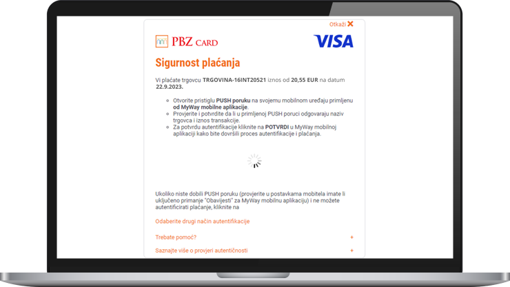 NAJBRŽI I NAJJEDNOSTAVNIJI NAČIN POTVRDE ONLINE KUPNJE JE PUTEM PUSH PORUKE.