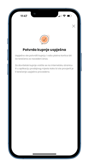 Ako su postavke za primanje poruka uključene, a ne primite push poruku, proces potvrde kupnje napravite putem QR koda.