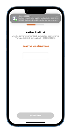 • Ako ste korisnik iOS uređaja ili na uređaju imate Android 13 (ili viši) operativni sustav, prilikom prvog pokretanja aplikacije, prije procesa registracije, prihvatite opciju primanja "Obavijesti" (push poruka). Ako na uređaju imate Android operativni sustav manji od 13, u postavkama mobilnog telefona automatski je uključena opcija primanja „Obavijesti" za MyWay mobilnu aplikaciju.