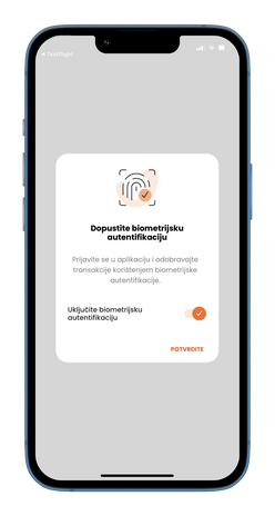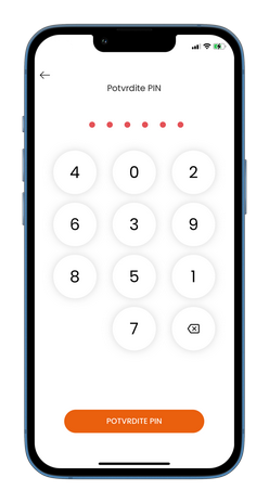 • Postavite i potvrdite PIN za prijavu u aplikaciju i odobravanje online kupnji, a za brže i sigurnije korištenje aplikacije, aktivirajte biometrijsku autentifikaciju otiskom prsta ili prepoznavanjem lica.
